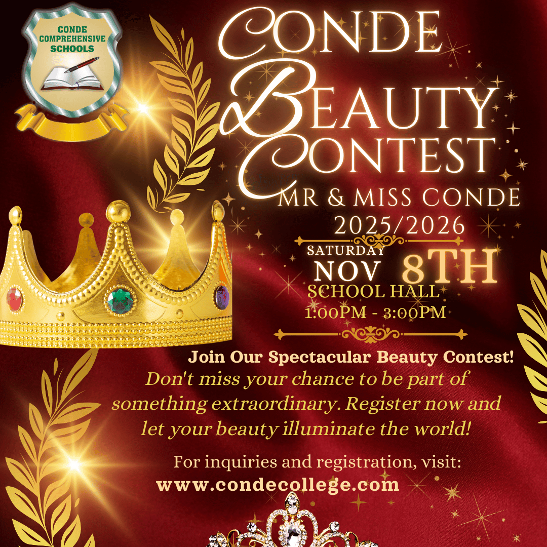 The crown is calling once again! After the huge success of last year’s maiden edition, Conde Comprehensive Schools proudly presents the Second Edition of the prestigious Mr. & Mrs. Conde pageant. This exciting event